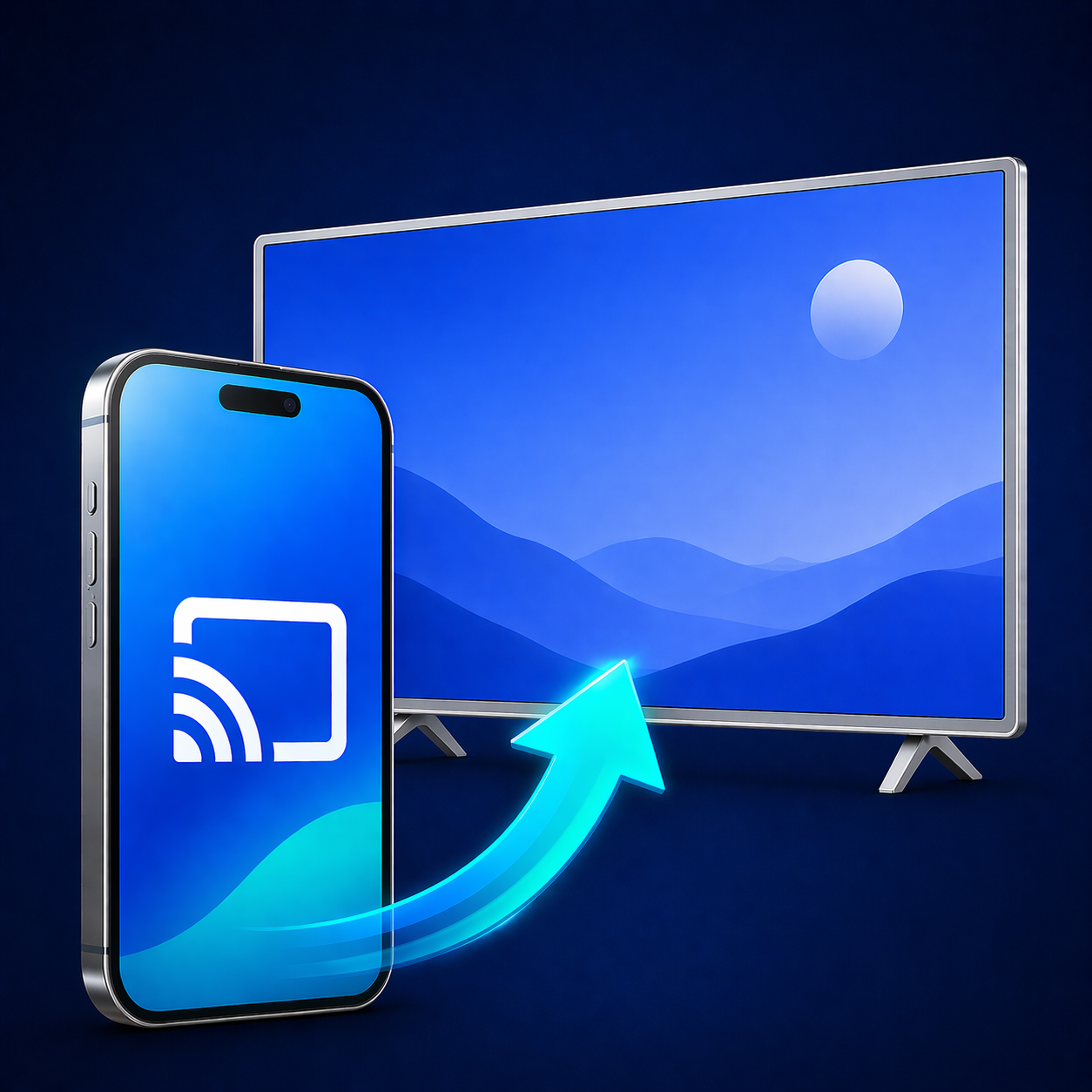 Mirror your iPhone or iPad screen to any modern smart TV in real time over WiFi. Apps, games, presentations — exactly what you see, on the big screen.